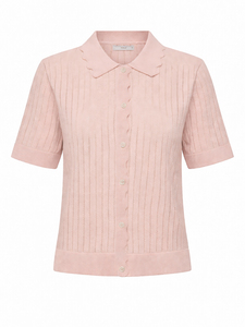 Der klassische Polokragen unterstreicht den zeitlosen Stil, während die durchgehende Knopfleiste mit dekorativen Knopf Details das Design harmonisch abrundet.