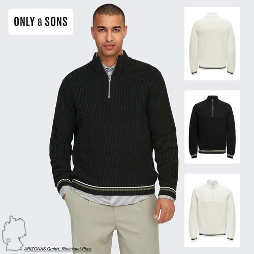 Warmer Strickpullover Stehkragen Sweater mit Zip Langarm Basic BHCodford