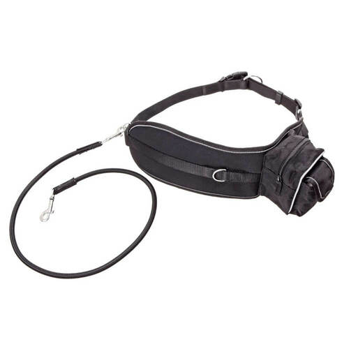 Gleichzeitig trägt sich das weiche Neopren-Material wie eine zweite Haut. Integriert ist eine flexible, 1 m lange Leine, die sich für individuelle Positions- und Führungsmöglichkeiten des Hundes wahlweise auf der rechten oder linken Seite des Doggy Joggers an den dafür vorgesehenen D-Ringen mittels Drehkarabiner befestigen lässt.