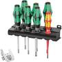 7-teiliges Schraubendreher Allround-Set mit dem besonderen Tool Rebel Extra. Kraftform Plus Griff für angenehm ergonomisches Arbeiten, bei dem Blasen und Schwielen vermieden werden. Harte Griffzonen für hohe Arbeitsgeschwindigkeit, während weiche Griffzonen hohe Drehmomentübertragung garantieren. Teilweise mit Lasertip und Take it easy: Die Spitze von Wera LasertipSchraubendrehern wird mit Laserstrahlen mikroskopisch fein aufgeraut. Diese raue Oberfläche beißt sich förmlich im Schraubenkopf fest. Das unbeabsichtigte Herausrutschen gehört der Vergangenheit an. Take it easy Werkzeugfinder mit Farbkennzeichnung nach Profilen und Größenstempelung - zum einfachen und schnellen Finden des benötigten Werkzeugs. Der Clou: Ein Schlüsselanhänger, der als Tool Rebel Gruß geformt ist und selbstverständlich auch als Flaschenöffner dient.