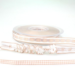 Raffiniertes Textil Dekoband uni mit farbigen Rand, das sich durch ein eingearbeitetes schmaleres kariertes Band in Rüschen legen lässt.