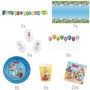 Lieferung: 1 Tischdecke (136 x 228 cm), 1 Girlande (19 x 200 cm), 6 Luftballons (27 cm), 8 Teller ( 23 cm) , 8 Becher (250 ml), 8 Strohhalme (19,6 cm lang | Motiv 4 x 6,3 cm) und 20 Servietten (33 x 33 cm)