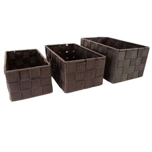 Verstauen Sie zuverlässig Kleinteile und sorgen Sie für Ordnung in Ihrem Wohnbereich oder Badezimmer. Im Lieferumfang sind je drei der gewählten Textil-Aufbewahrungsboxen enthalten, die je eine unterschiedliche Größe aufweisen und über eine ansprechende geflochtene Textil-Optik verfügen. Für die nötige Stabilität wird durch ein farblich abgestimmtes Metallgestell alles zusammengehalten.