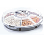 Diese Snackschale aus Kunststoff ist mit 6 Fächern und einem Deckel ausgestattet. Ideal für Zu Hause oder auch mit praktischem Griff zum Mitnehmen.